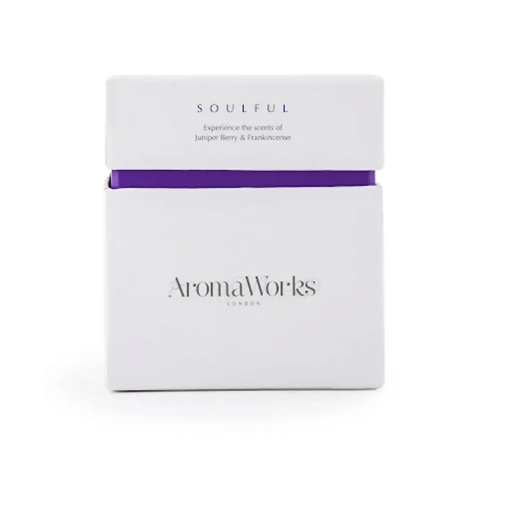 Complex and exotic, our Soulful blend brings together seven incredible essential oils. Top notes of spicy Frankincense and fruity Juniper Berry provide a deeply calming sensation to soothe jangled nerves, whilst the fragrant base notes of Patchouli help to ease away fatigue, providing a truly warming and relaxing experience. We source natures finest soy wax to make our candles, while the aroma delivered by our 100% pure essential oils will envelop you in the scents of purity.