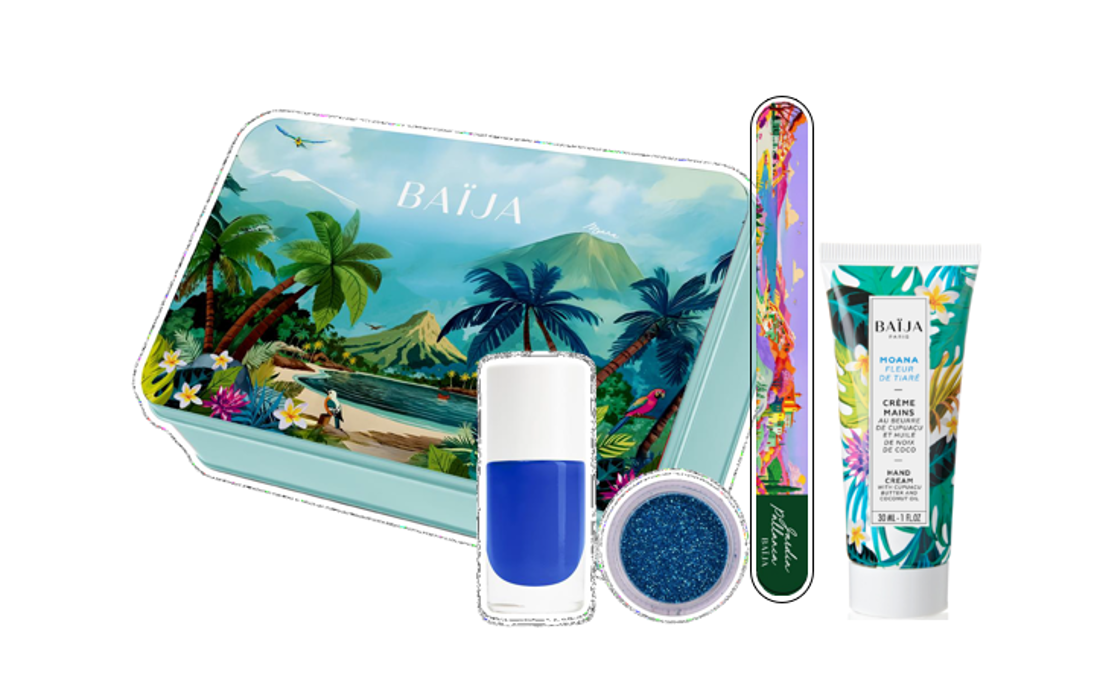 The Nails & Glitter Party set combines the fragrance expertise of BAÏJA and the clean beauty of nailmatic in an illustrated metal box, designed to shine right down to your fingertips