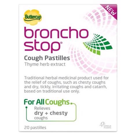 BronchoStop Cough Pastilles are berry-flavoured pastilles used for the relief of coughs, such as chesty coughs and dry, tickly, irritating coughs and catarrh. 100% alcohol-free and Non-drowsy formula. The pastilles are handy for on the go relief from all types of cough.