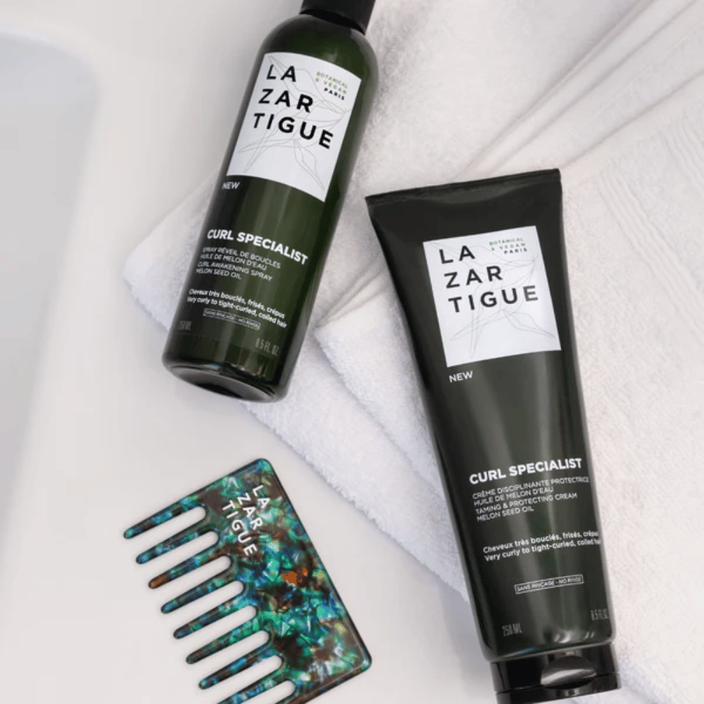 The hair fibre of very curled, tight curled and coiled hair is naturally fragile and dry. As the fibre is naturally curved, sebum struggles to pass it along, preventing the fibre from being protected and leading to hair breakage. In addition, once the hair fibre is exposed to UV rays, it becomes fragile, and curls are less bouncy. Using the Lazartigue Curl awakening spray instantly revives curls by rehydrating them, protecting the hair fibre from damage caused by UV rays.