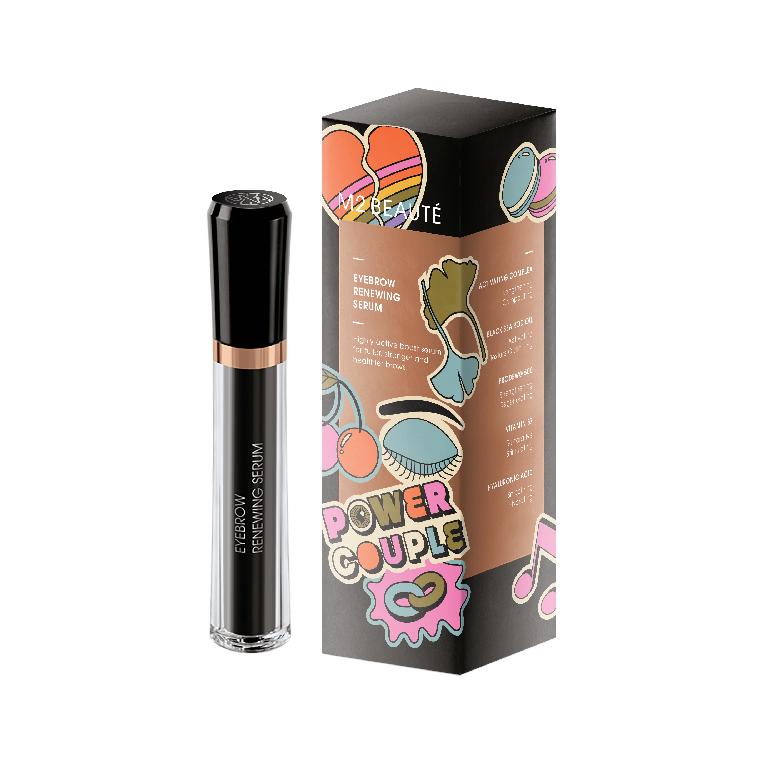 As part of the limited Power Couple promotion are two exclusive ingredients in the EYEBROW RENEWING SERUM Power Couple pendants included.