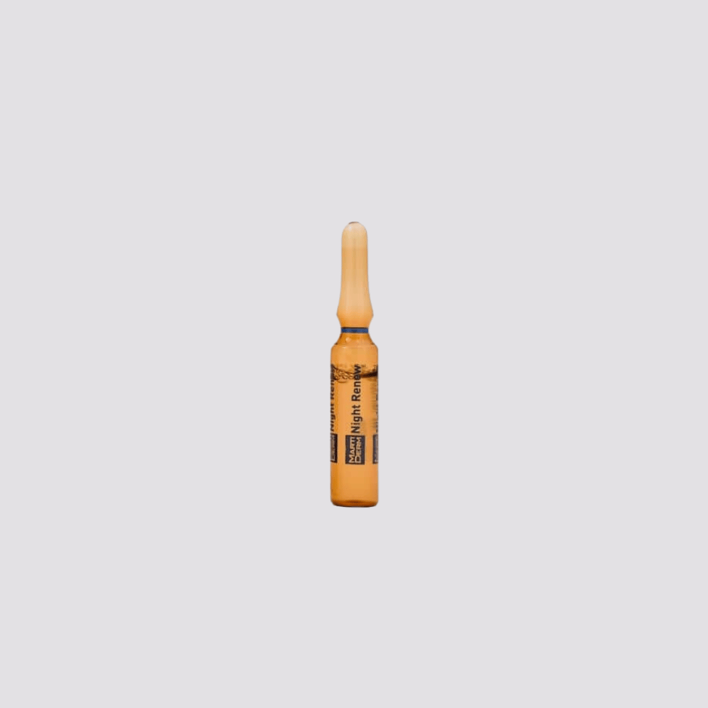 Night Renew ampoules contain alpha hydroxy acids that gently exfoliate the outermost layers of the skin. Marine collagen and hyaluronic acid prevent water loss and stimulate collagen and elastin production, moisturising, protecting and restructuring the skin. It also reduces wrinkles, smoothing and softening the skin and evening tone. It powers the action of other products especially indicated for night-time use.