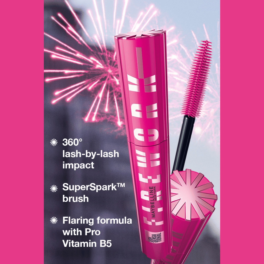 Ready for main character lashes? Lash Sensational Firework mascara delivers 360° extraordinary lash impact and full flare. A Sensational Firework of lashes. With a conditioning formula infused with Pro-Vitamin B5, the newest member of the fan-favourite Lash Sensational mascara family charges lashes from root to tip. Its custom SuperSpark Brush is made with different lengths of flex bristles, arranged in a spiral firework pattern to hug and shoot lashes up and out. Allergy tested. Ophthalmologist tested. Suitable for contact lens wearers.
