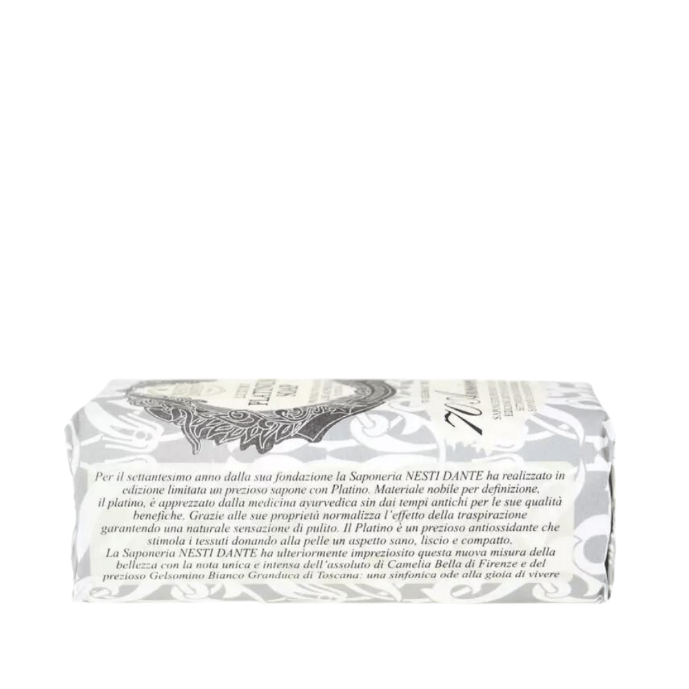 To celebrate its 70th anniversary Nesti Dante has created a precious natural soap prepared with Platinum, the most precious material ever, in a special limited edition. Platinum, thanks to its benefic qualities, keeps the transpiration regular guaranteeing a natural clean feeling. The Platinum is a precious antioxidant that gives a healthy, firm and smooth skin. The Saponeria NESTI DANTE has further enriched this new standard of beauty with the unique and intense note of the absolute of Camelia Bella di Firenze and precious Granduca di Toscana White Jasmin : a true Italian ode to joy.