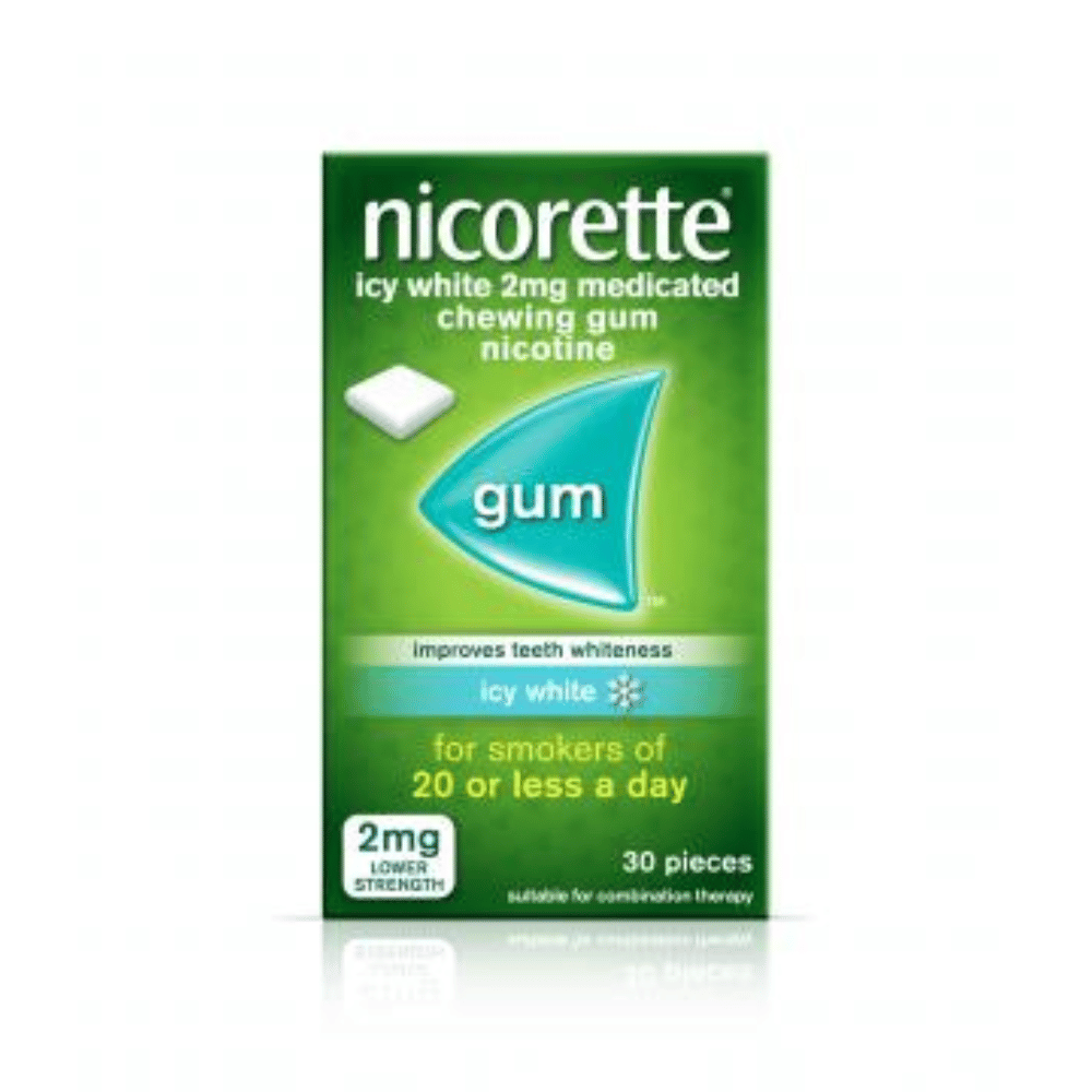 Nicorette Gum is available in two different strengths 2mg (low strength) and 4mg (full strength) and in three different flavours – icy white, freshmint, and original. As the chewing gum contains a small amount of nicotine it keeps the need and craving for a cigarette at bay.