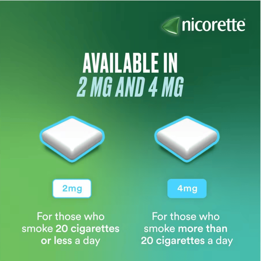 Nicorette Gum is available in two different strengths 2mg (low strength) and 4mg (full strength) and in three different flavours – icy white, freshmint, and original. As the chewing gum contains a small amount of nicotine it keeps the need and craving for a cigarette at bay.