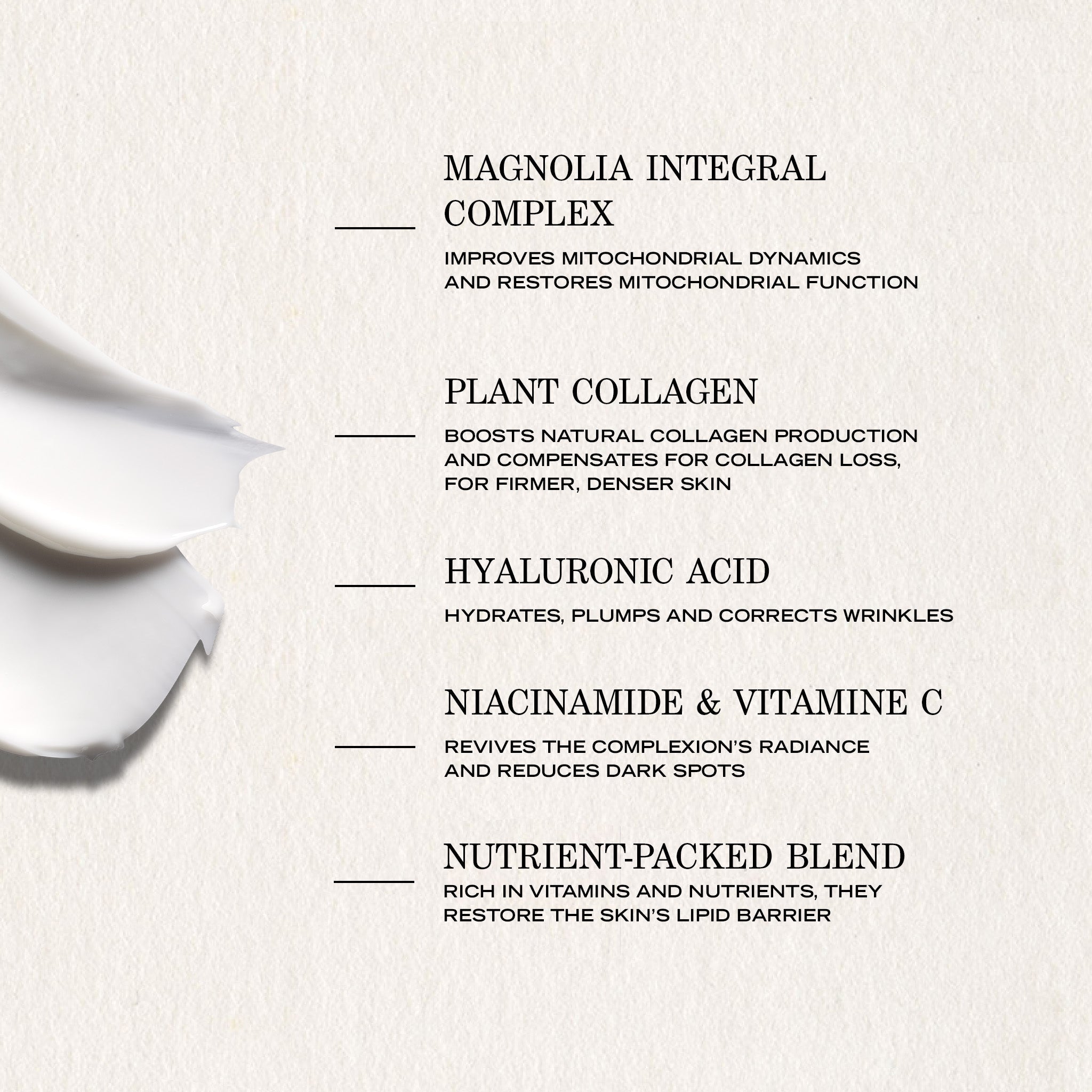 Discover an exceptional youth care treatment designed to meet the needs of even the driest skin: this cream, formulated with a complex of magnolia, plant-based collagen, and niacinamide, helps reverse visible signs of aging.