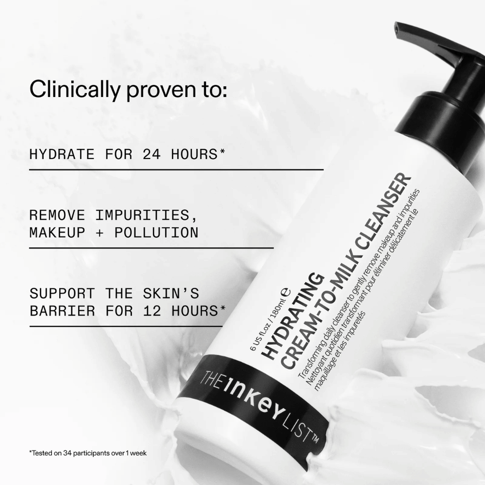 Ready to double-cleanse the INKEY way? We got you. Start with our Oat Cleansing Balm - it's oil-based and melts away all traces of SPF and waterproof + long-wear makeup. The follow with Hydrating Cream-to-Milk Cleanser to remove any leftover residue and leave skin hydrated for 24 hours post-rinse*. *Tested on 34 participants over 1 week.
