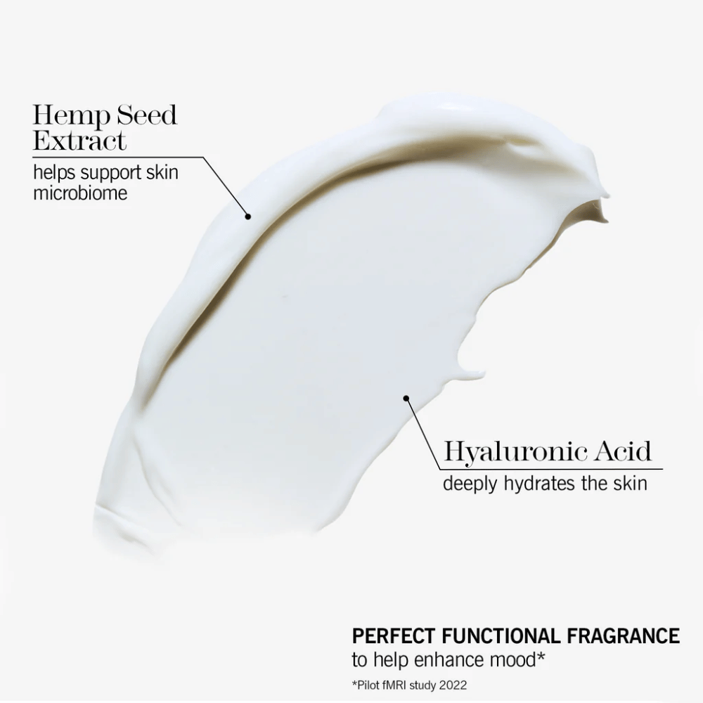Our vegan body butter contains Hemp extract to help support skin microbiome, moisturising Hyaluronic Acid, nourishing Shea Butter and uplifting essential oils.