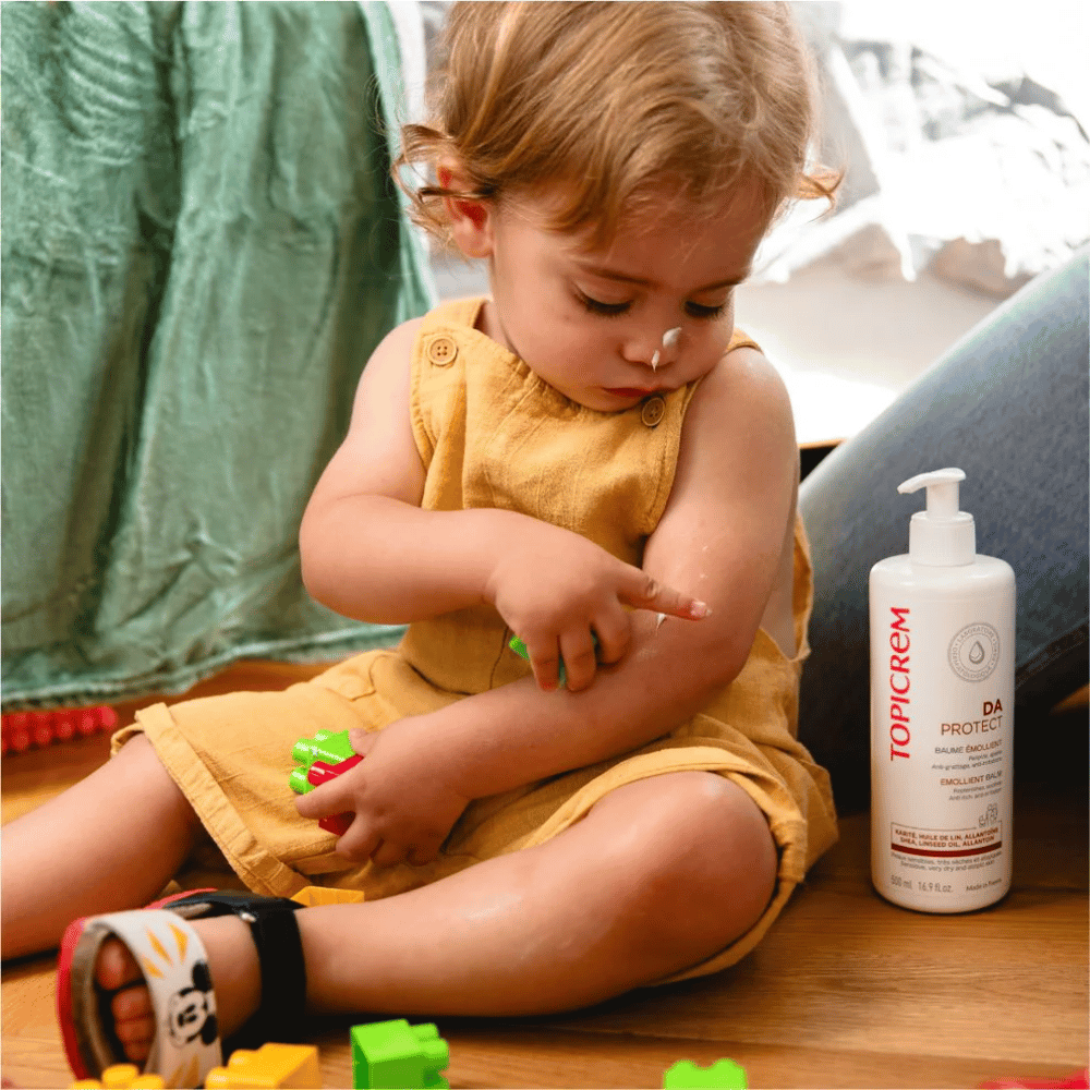 Enriched with linseed oil rich in omega 3 and 6, shea butter and Allantoin, DA PROTECT Emollient Balm intensely re-lipidizes and soothes very dry and atopic sensitive skin of the whole family from birth (infant, child, adult).