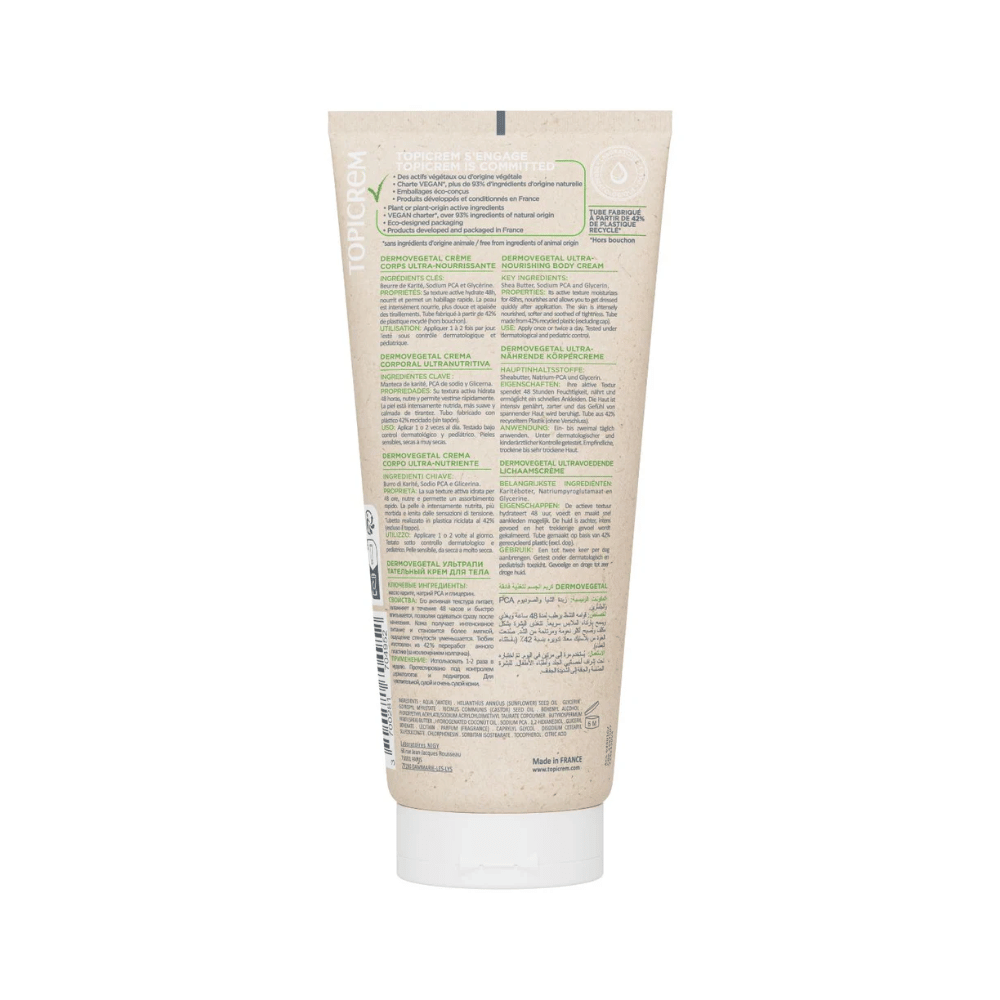 DERMOVEGETAL Ultra-Nourishing Body Cream is the ally of dry to very dry skin for the whole family. VEGAN with 96% ingredients of natural origin and enriched with shea butter, our nourishing body cream intensely nourishes for 48 hours* and protects the skin.