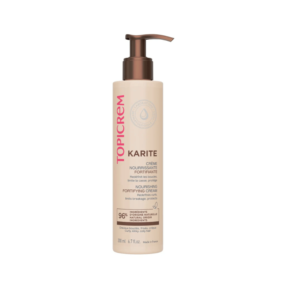 KARITE Fortifying Nourishing Cream redefines curls, nourishes and protects hair , it limits brokenness. Enriched with traditional and dermatological ingredients: Shea Butter from responsible sourcing, Amla Extract, and Panthenol. Our hair cream is formulated with 95% ingredients of natural origin, without sulfates nor silicones , it does not weigh down the hair. This nourishing hair cream with a pleasant and creamy texture is delicately fragranced with coconut milk, macadamia and tonka bean.