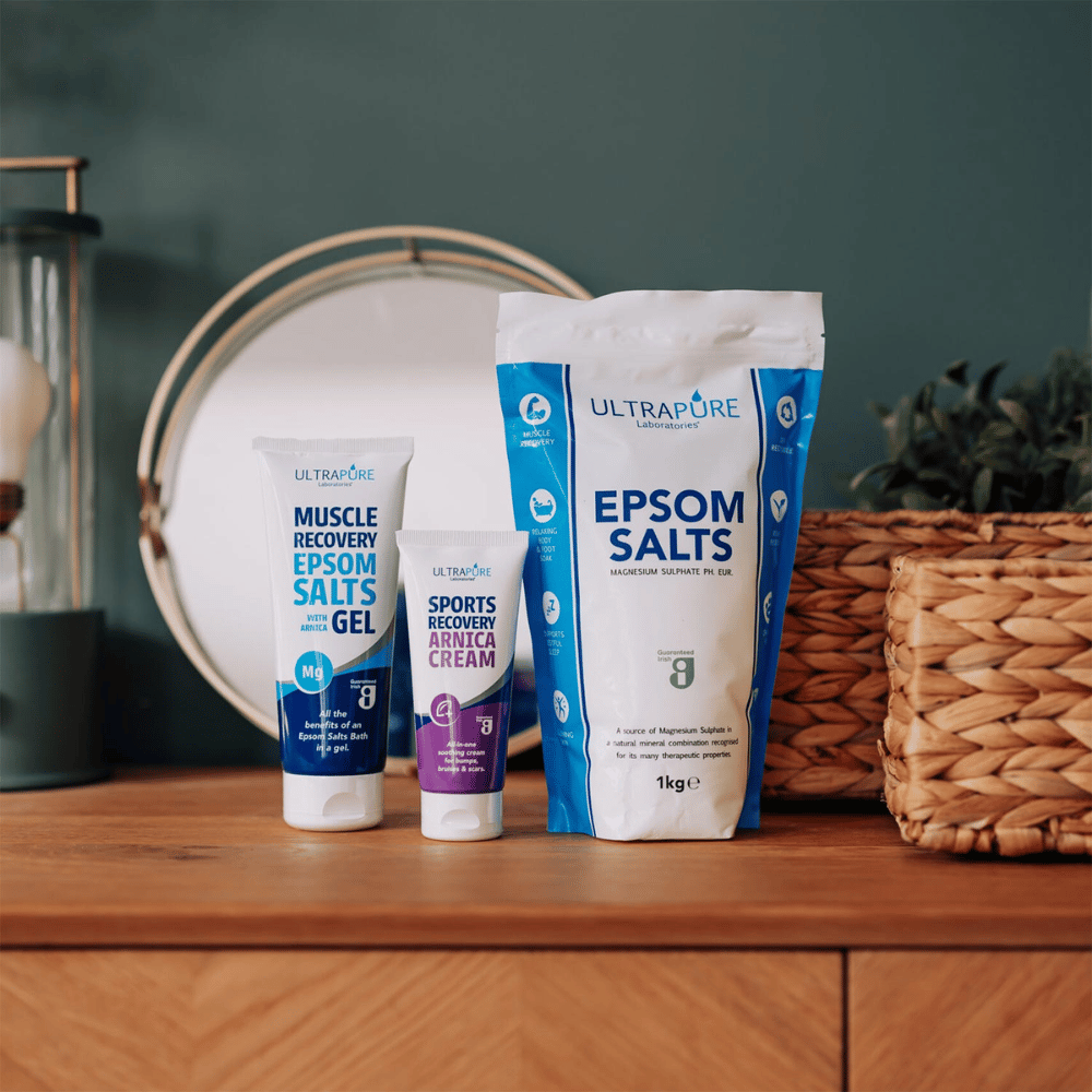 Irish-made, ULTRAPURE Laboratories® Epsom Salts Gel is a fragrance-free, topical gel infused with Arnica and Aloe Vera designed to support natural muscle recovery. An idea muscle run to soothe sore, tired and aching muscles. Enjoy all the benefits of an Epsom Salts bath in a gel.