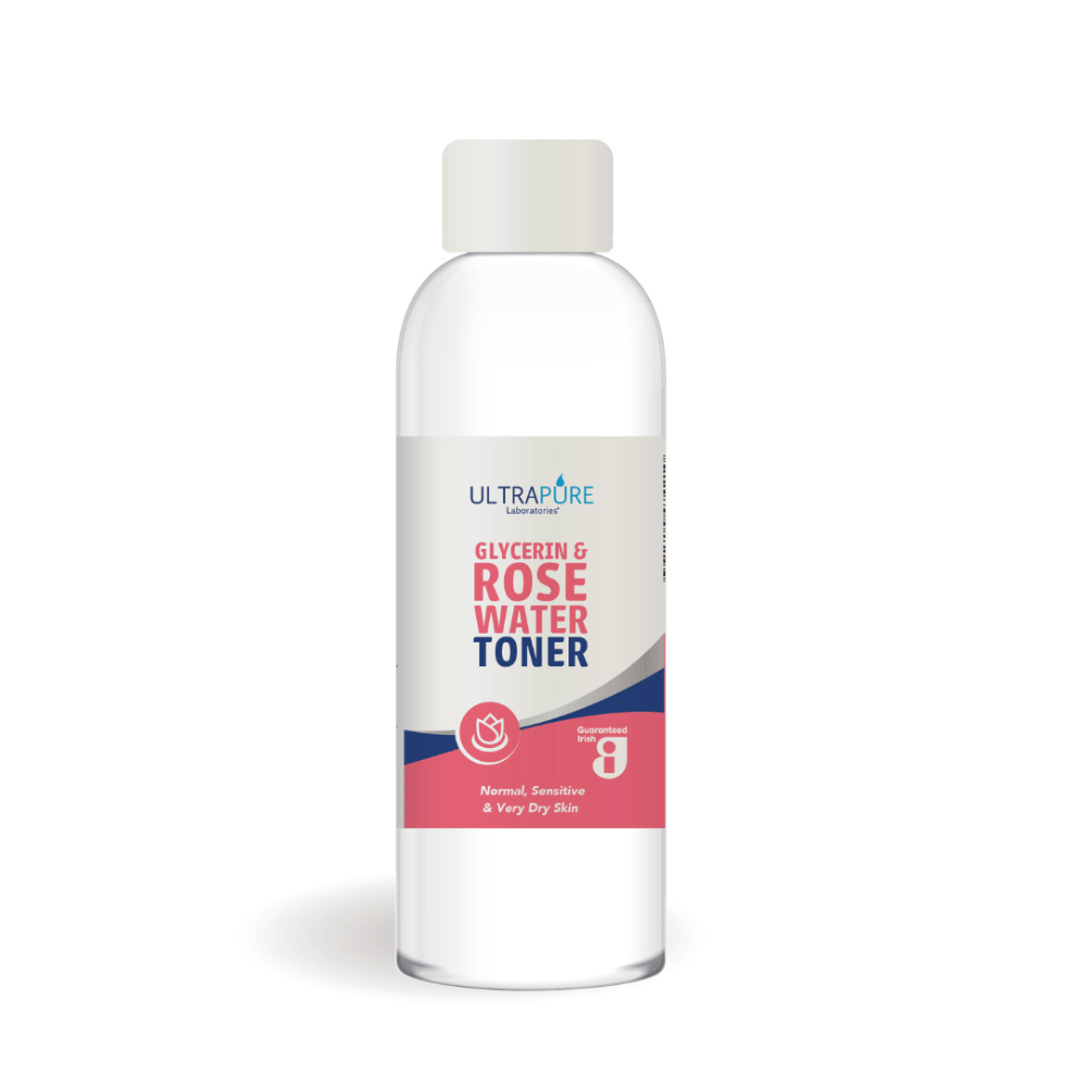 Guaranteed Irish and Vegan-Friendly, ULTRAPURE Laboratories® Glycerin & Rose Water Toner is naturally beneficial to the skin. This delicately scented formula gently leaves the skin feeling soft, balanced and refreshed.