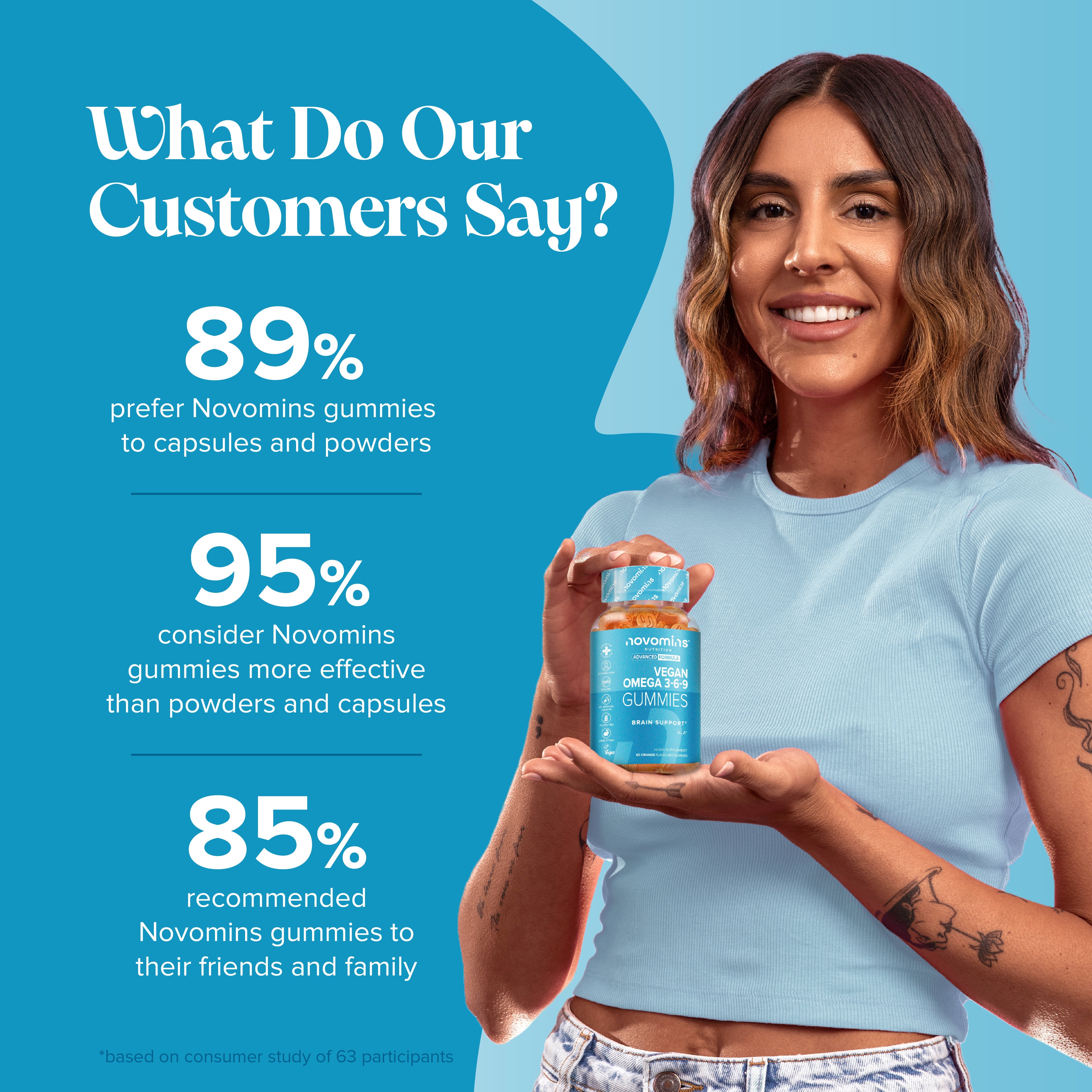 Whether you're looking to support heart health or just want to give your wellness routine a boost, Novamins Vegan Omega gummies are a great choice.